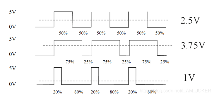 输出电压=(接通时间/脉冲时间)*最大电压值