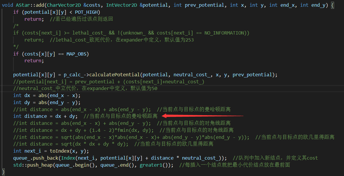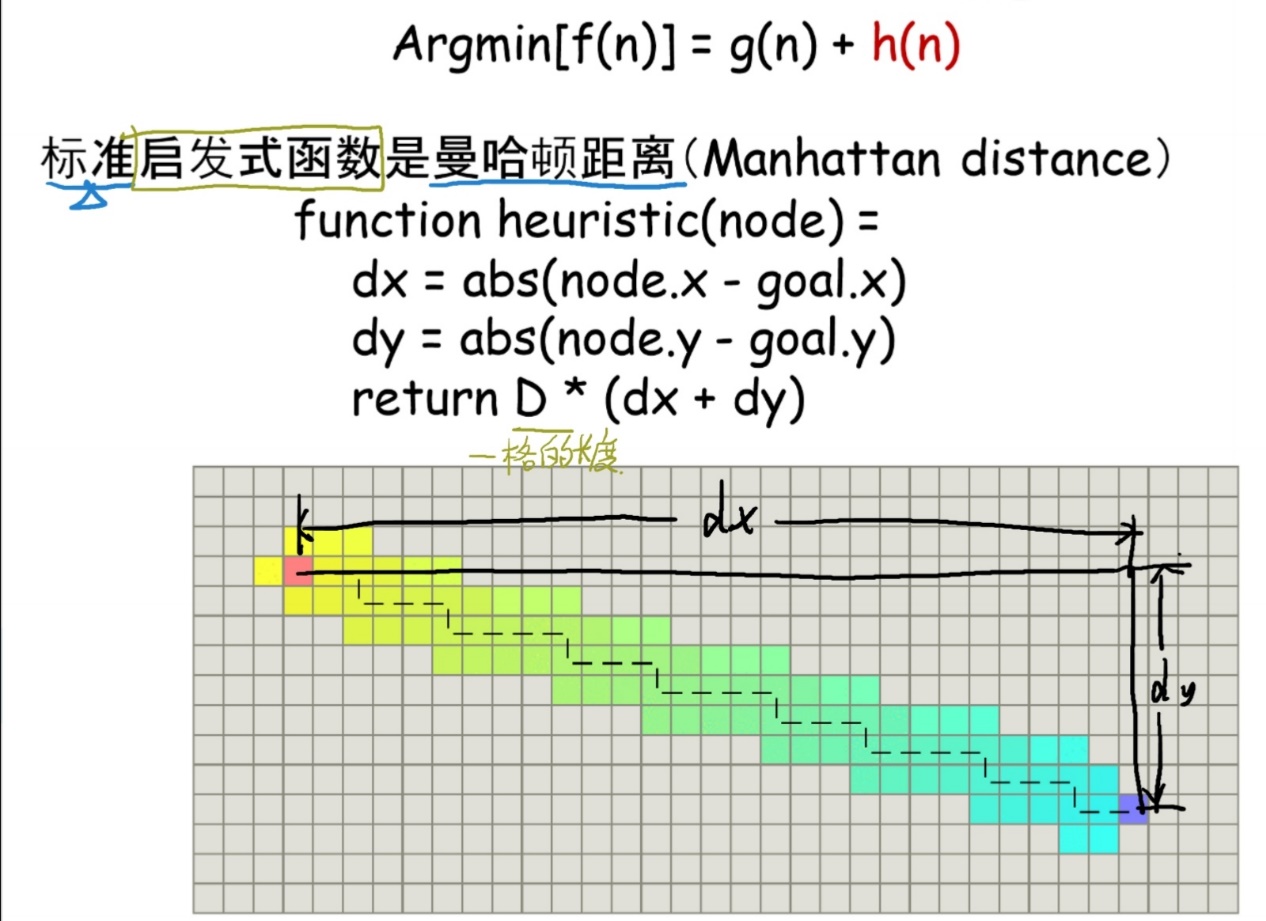 int distance = dx + dy; //当前点与目标点的曼哈顿距离