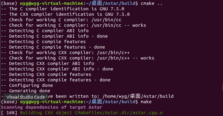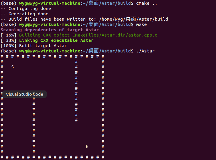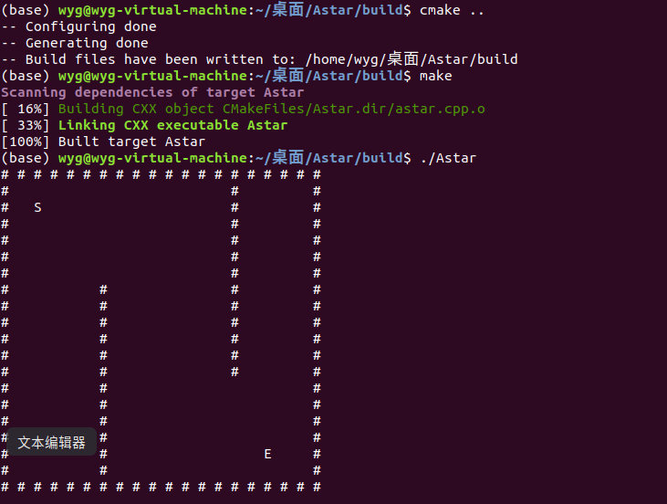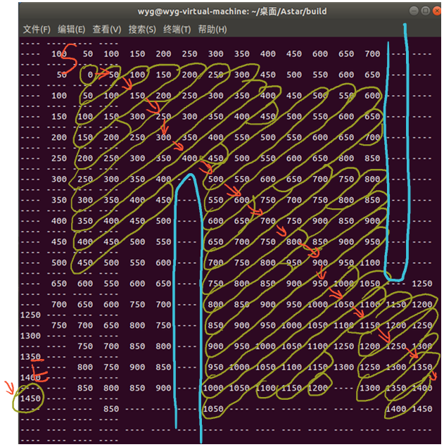 - 参照所给A*演示例程,修改代码,并在linux下编译,运行。