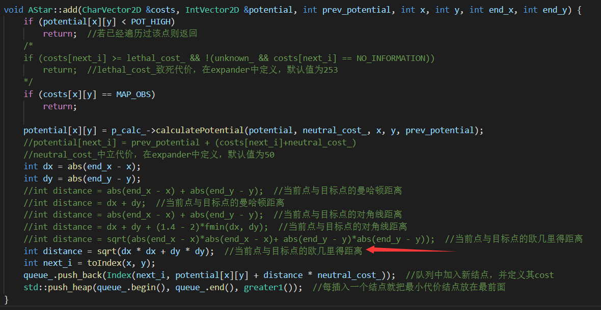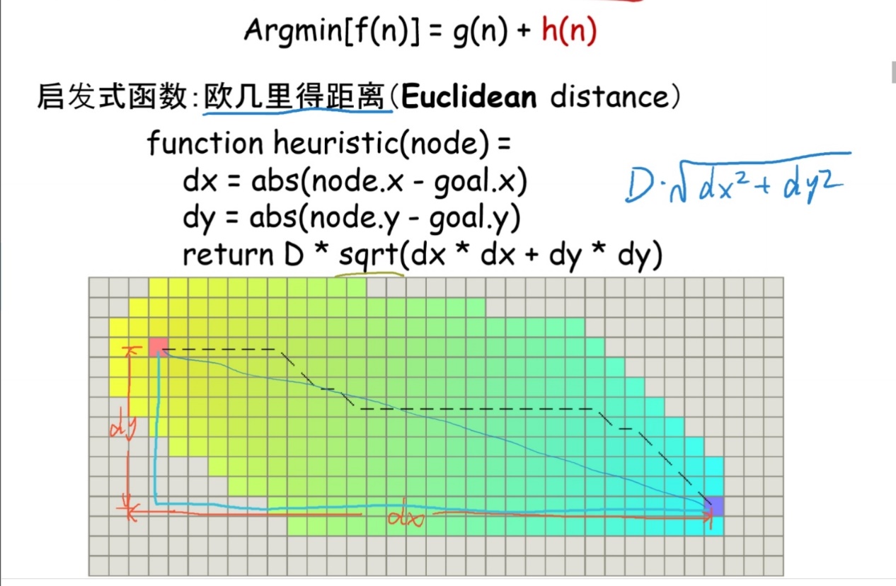 int distance = sqrt(dx * dx + dy * dy); //当前点与目标点的欧几里得距离