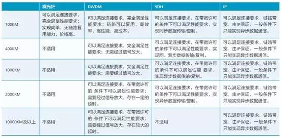 - 容灾通信链路选择后,还需要根据应用系统的数据变化量、数据传输的可靠性,进行验证确认设计的链路是否满足预期的目标。目前数据远程传输的主要方式、优缺点、适合的传输距离如表所示。