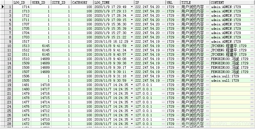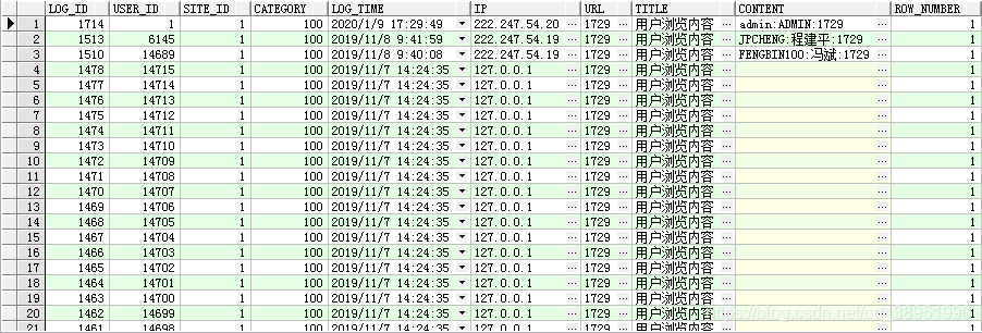 公司的一个内容发布网站有一张记录日志的表,我把这张表用来记录用户浏览情况。因为一个用户对同一个内容会有多次浏览,所以表中会有多个记录。原始的表结果大致如下: