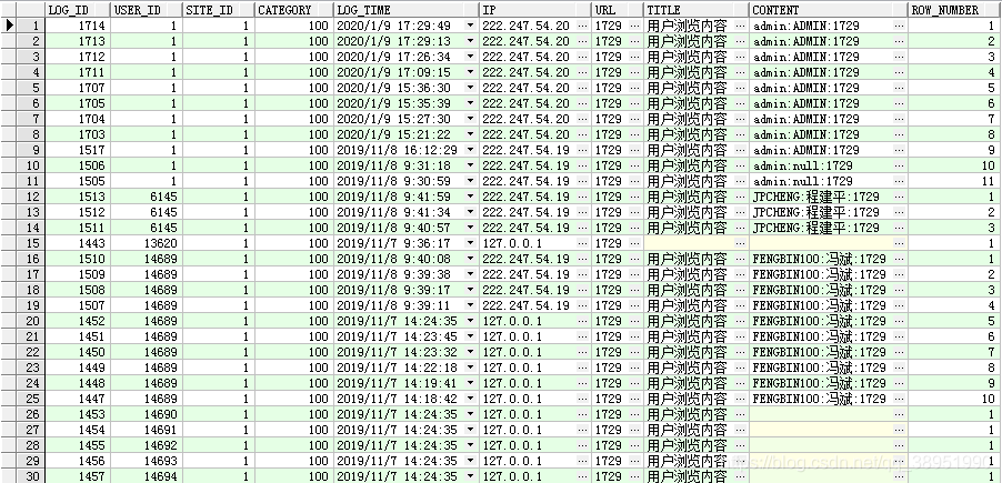 查询得到的结果如上图所示。接下来就很简单了,获取到每一组的第一个及上图数据中的row_number为1的前30条数据,然后再进行log_id排序就行了。