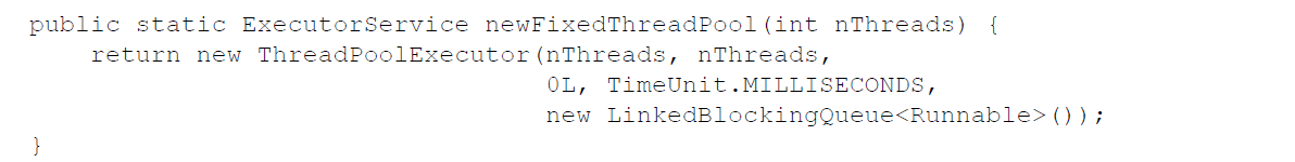 FixedThreadPool的corePoolSize和maximumPoolSize都被设置为创建F ixedThreadPool时指 定的参数nThreads。
