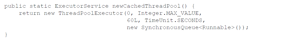 CachedThreadPool是一个会根据需要创建新线程的线程池。下面是创建Cached ThreadPool的源代码。
