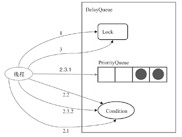 ScheduledThreadPoolExecutor在一个循环中执行步骤2, 直到线程从Priori tyQueue获取到一 个元素之后(执行2.3.1之后),才会退出无限循环(结束步骤2)。