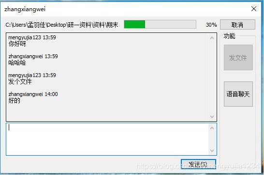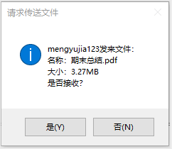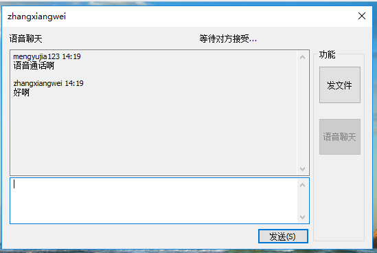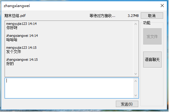 向对方发文件,等待对方接受: