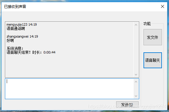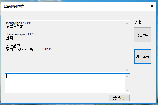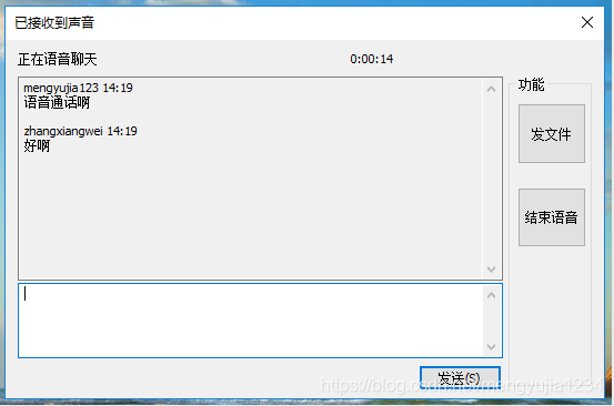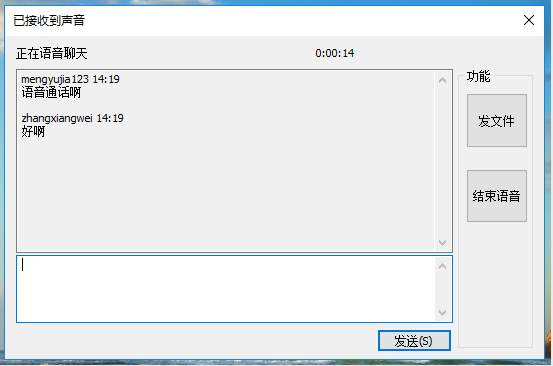 单击“结束语音”按钮,结束语音通话: