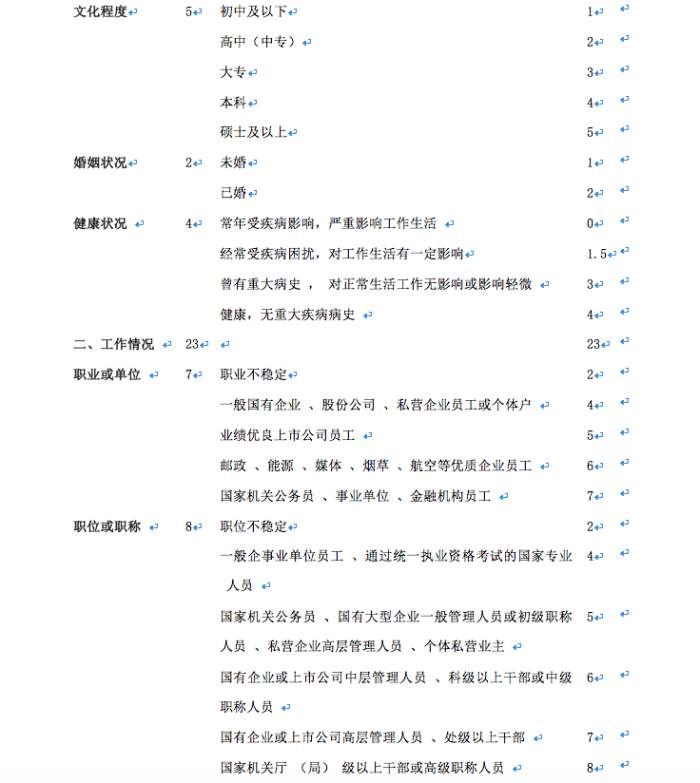 分配变量的计算权重 确定用户变量和分配权重,这个阶段其实是在获取数据之前就要考虑的事情,因为我们需要去定义用户去填写哪些个人信息。从而通过人工的定义规则对这些信息的权重和变量进行确认,当然这些权重和变量并不是一个人去口头决定的,这些变量和权重一般都是公司的某个权威和专家进行确认。