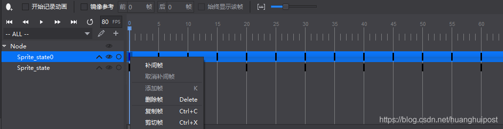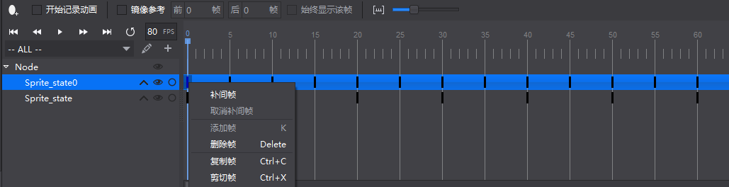 这样就完成了一个在间隔60的时间轴中的两帧动画。