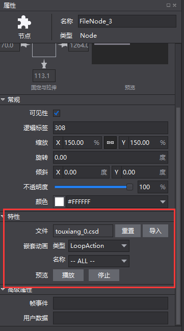 2、将制作好的csd动画以节点的方式加入到主场景中