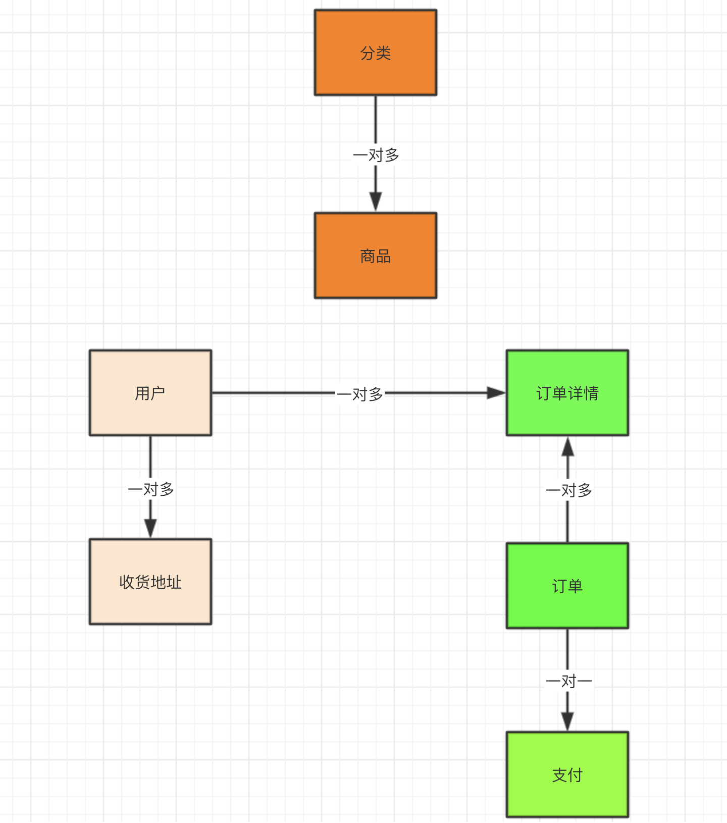 - 仔细思考业务关系,得到如下表关系图