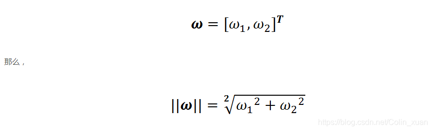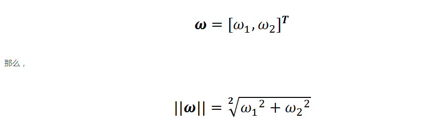 ||W|| 表示w的二范数,即求所有元素的平方和,然后开方,比如对于二维平面: