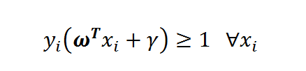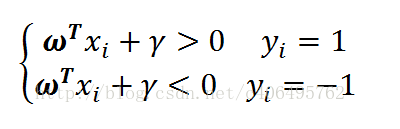 每个样本点都有一个类别标签,如果我们的超平面方程能够完全正确的讲上图样本点正确分类,就会满足下面的方程: