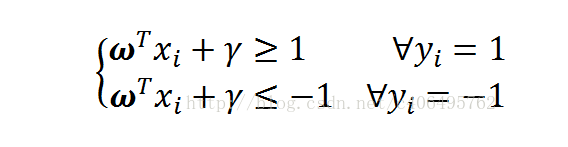 我们在上面把标签设置为1 和-1 这样的标记方便我们将上述方程变成如上方式。。