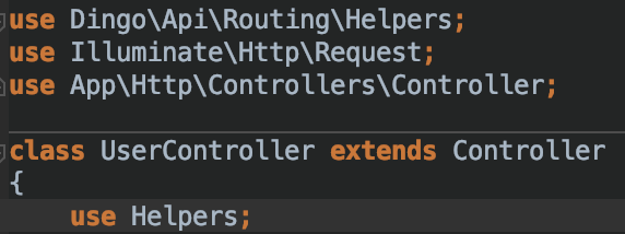 admin 的 UserController 下 引入 dingo 的 Helpers