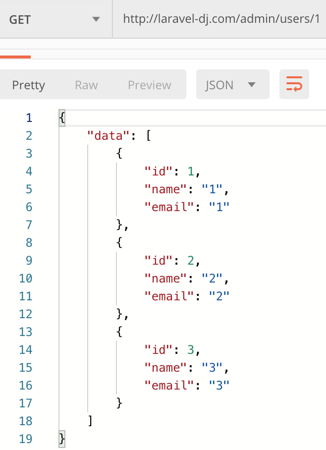 并在 Api\Admin\UserController show 方法 内写入 dd('admin' . $id);