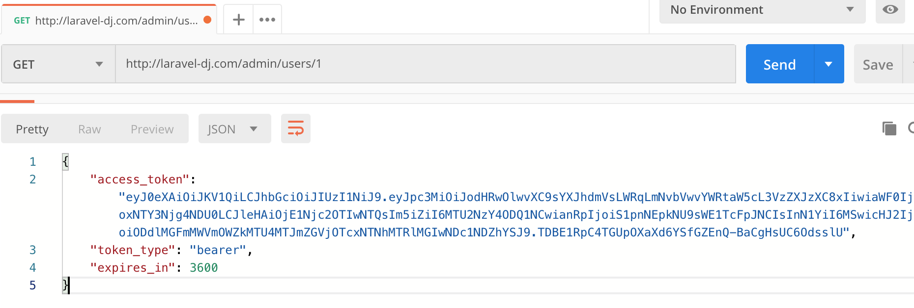 在 admin 下的 UserController 下的 show 方法 内 手动登陆 并编写 respondWithToken 方法 返回 token