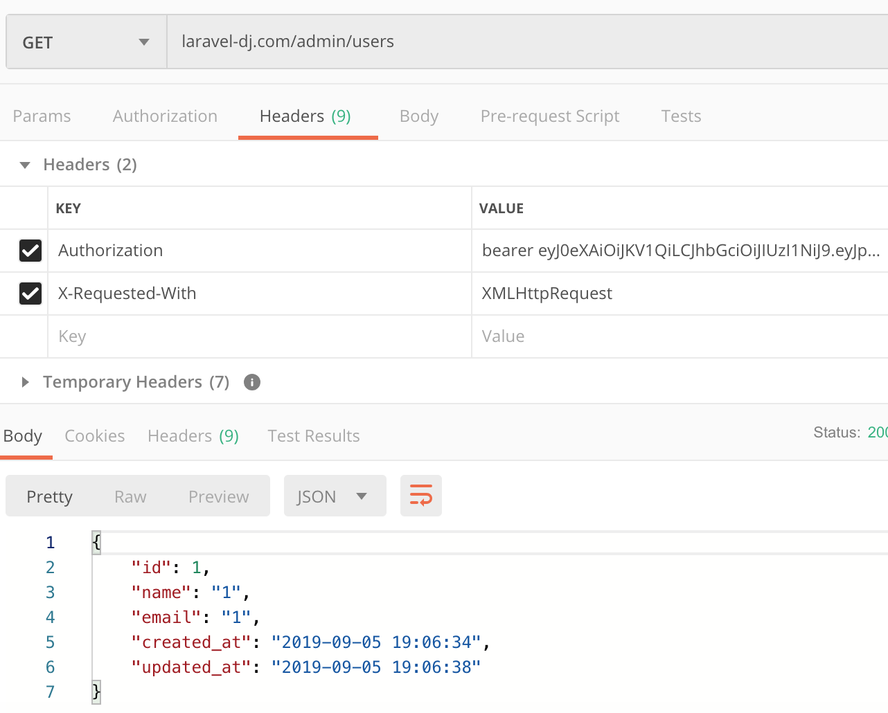 header 内 加上 Authorization:bearer Token 和 X-Requested-With:XMLHttpRequest 即可正常访问