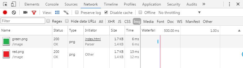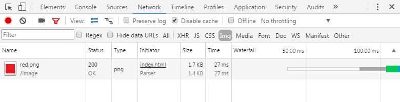上面代码中,当解析HTML时会加载<img>标签元素上的图片。