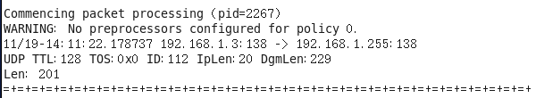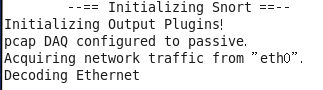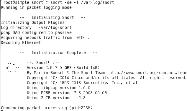 (3)输入”snort de –l /var/log/snort”,启动snort,记录详细信息到var/log/snort