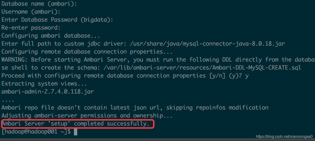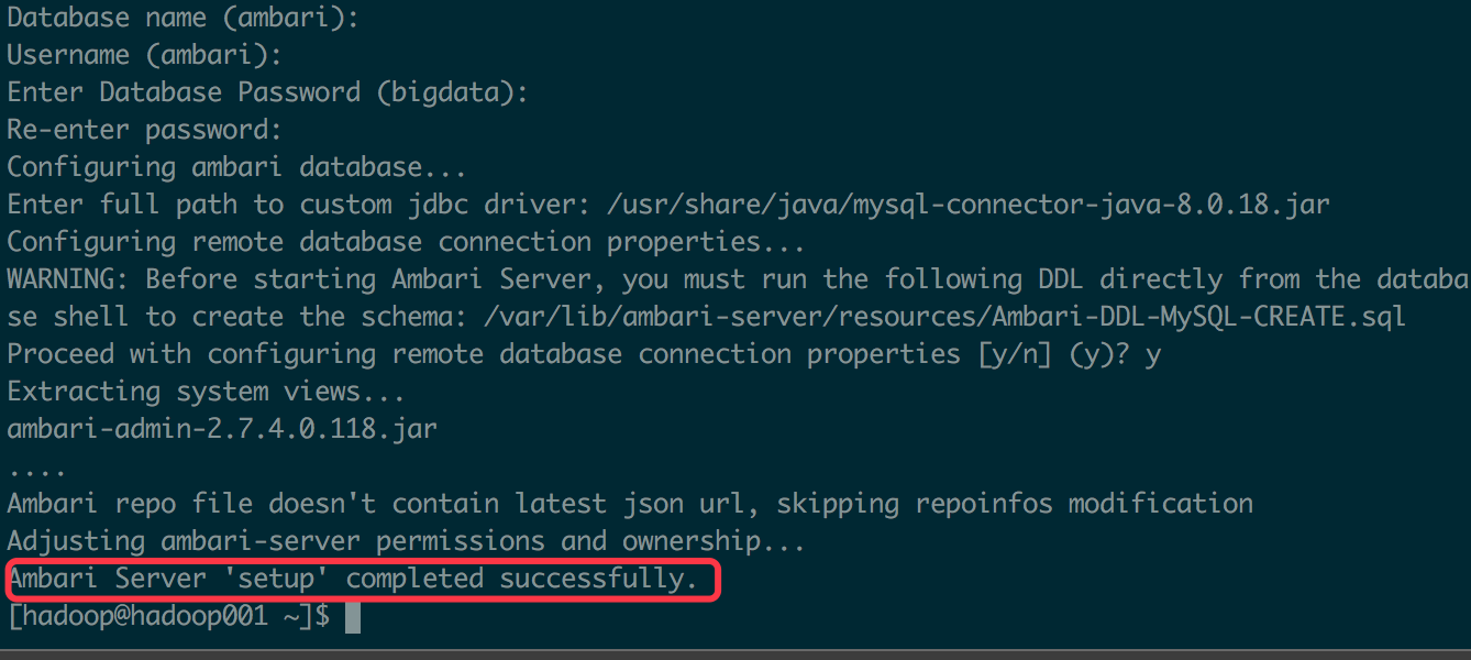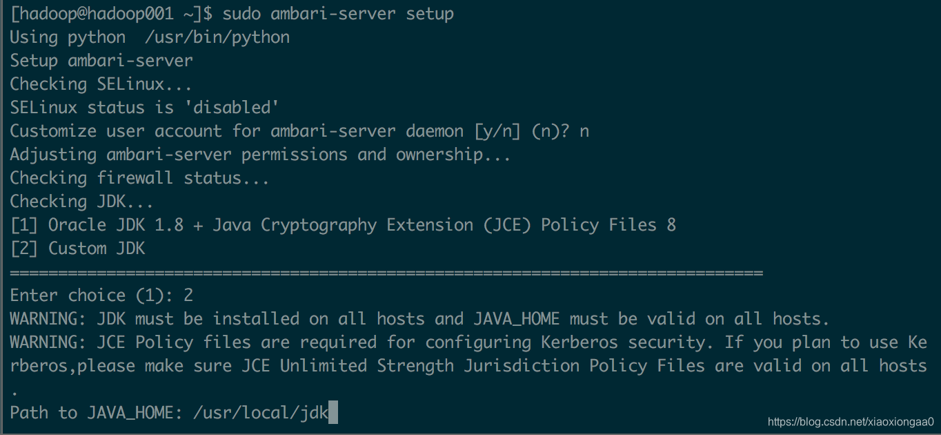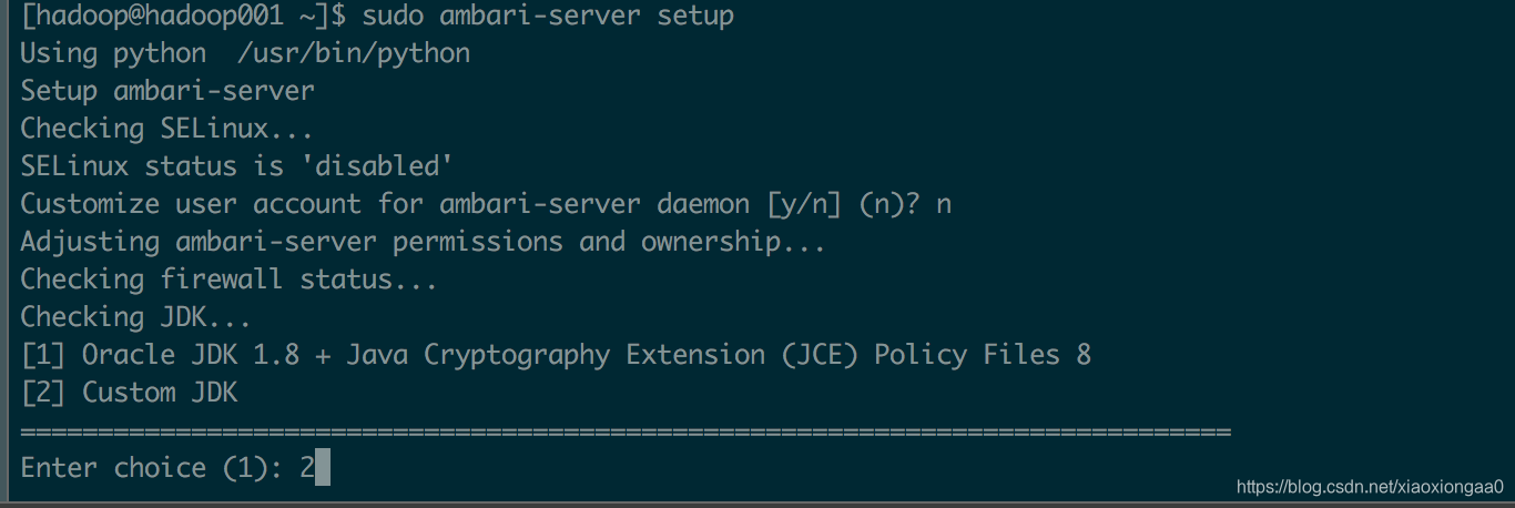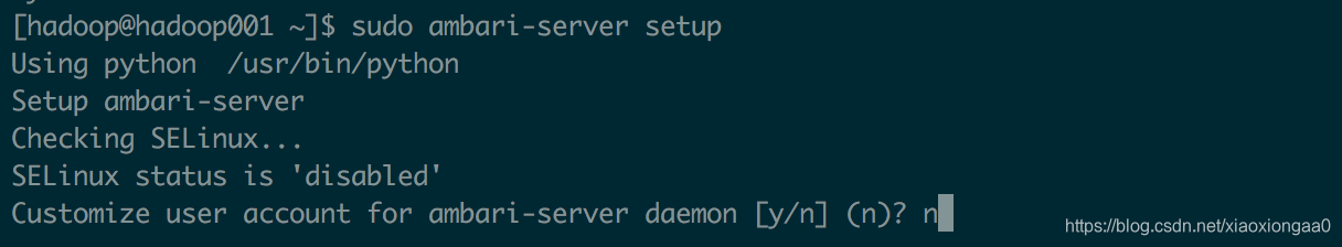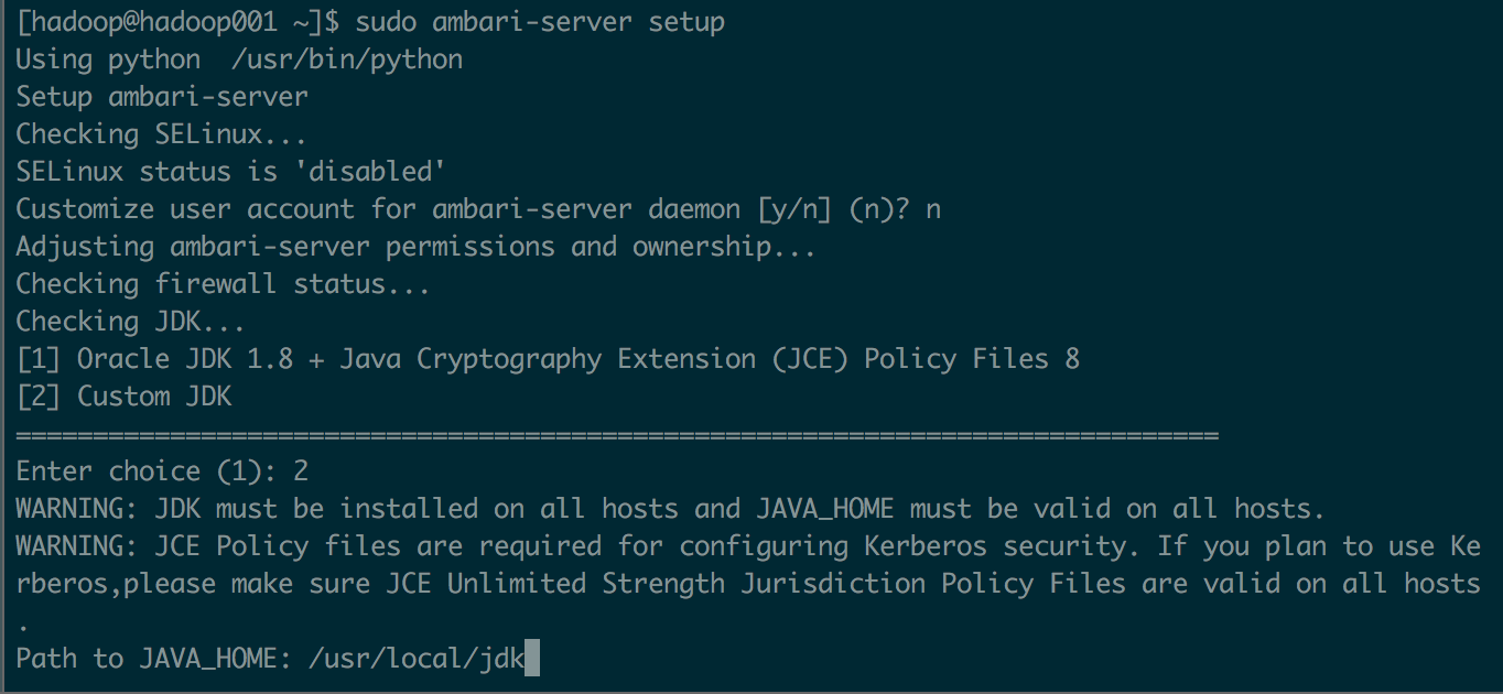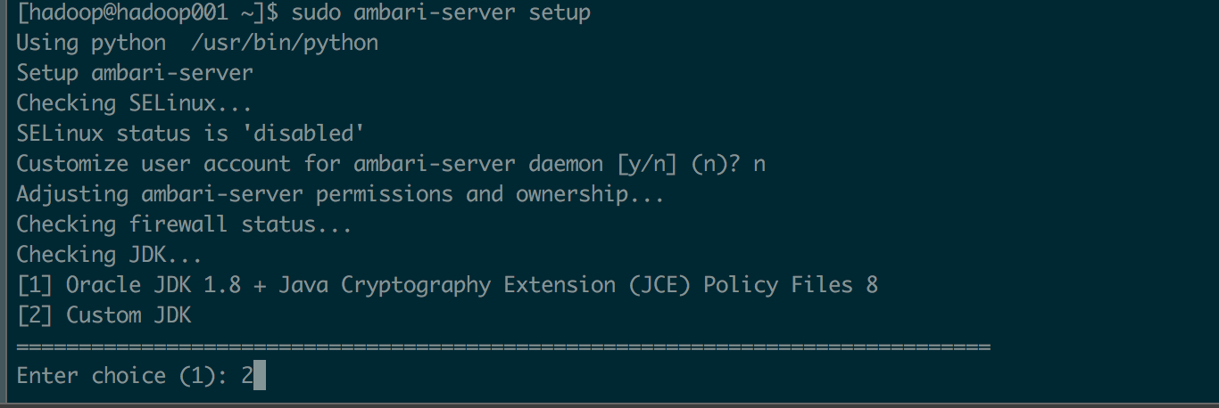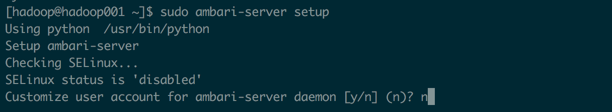 [hadoop@hadoop001 ~]$ sudo ambari-server setup