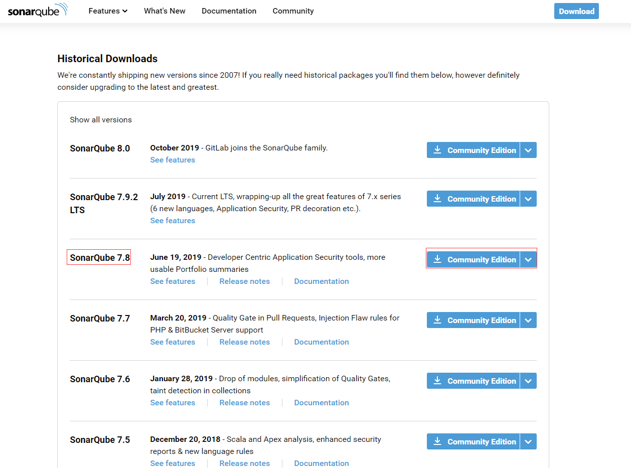 由于我本地安装的jdk是1.8版本,所以只能安装Sonar 7.8以下版本了,7.9以上需要安装JDK11才能支持了。快速下载链接,直连