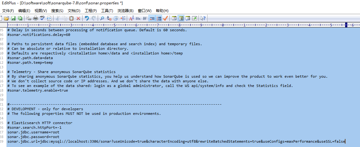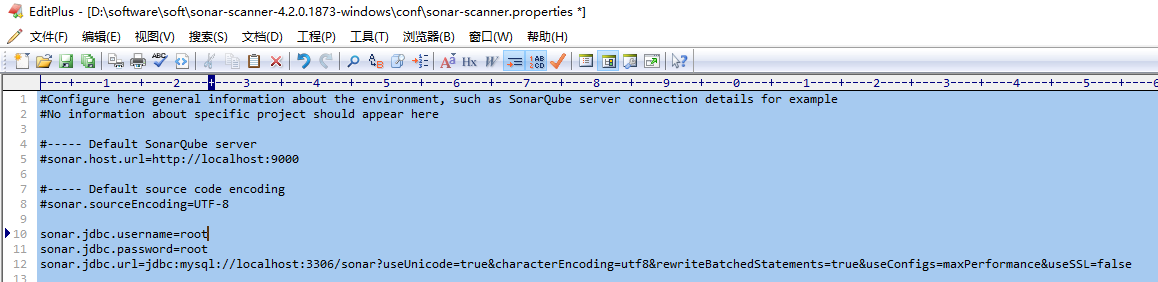 sonar.jdbc.url=jdbc:mysql://localhost:3306/sonar?useUnicode=true&characterEncoding=utf8&rewriteBatchedStatements=true&useConfigs=maxPerformance&useSSL=false