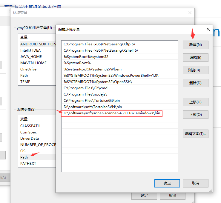 在Path中添加这个环境变量 D:\software\soft\sonar-scanner-4.2.0.1873-windows\bin