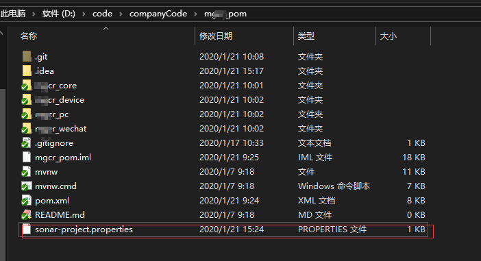 注意:如果一个项目中有多个子模块项目,那么这个sonar-project.properties文件就要放置在对应的子模块的根目录上。
