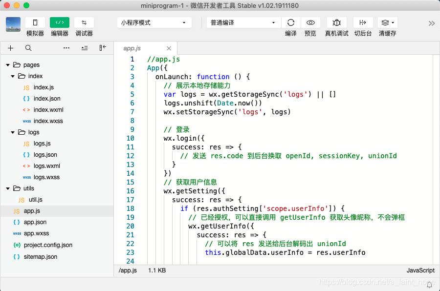 就是说,全局的内容,全局变量和全局的业务逻辑,在这里实现。至于全局的配置,请移步到app.json文件中。
