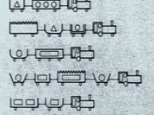 答案是左边这些火车每一个都有一节车厢封了顶。