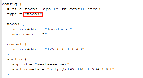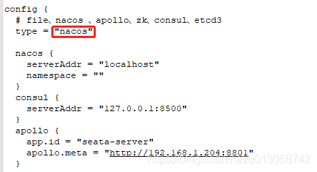 将registry.conf添加到项目resources的根目录,registry以及config的type同样选择nacos