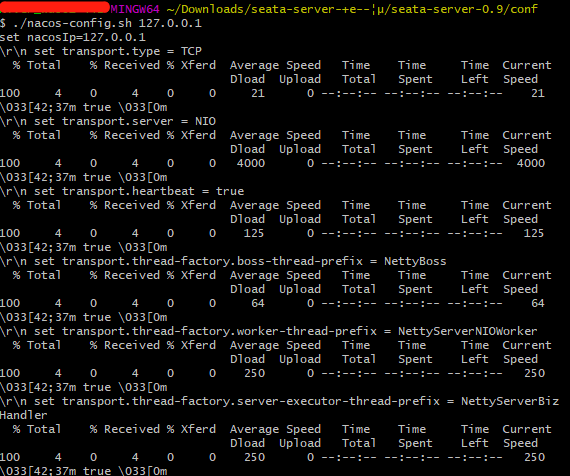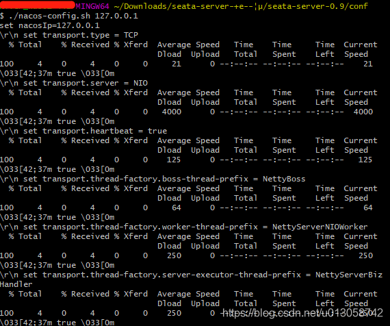 官网seata-server-0.9.0的conf目录下有该文件,但是seata-server-1.0.0的conf目录下没有nacos-config.sh文件,新增即可,内容如下: