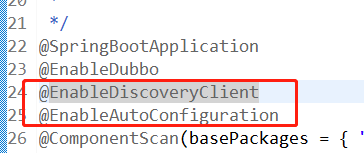 添加@EnableDiscoveryClient以及@EnableAutoConfiguration注解