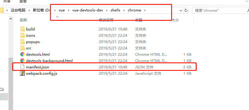 11.在Chrome中 打开地址chrome://extensions/ 将D:\vue\vue-devtools-dev\shells\chrome文件夹拖入Chrome中