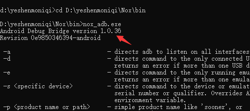 [图1] 夜神模拟器文件夹下的adb.exe版本