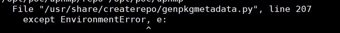 修改genpkgmetadata.py 开头的环境,python后面加2.7,保存退出,执行creatrepo命令依然报错如上图。