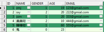 insert into stu values (seq_stu.nextval,'张三',1,22,'abc@126.com');