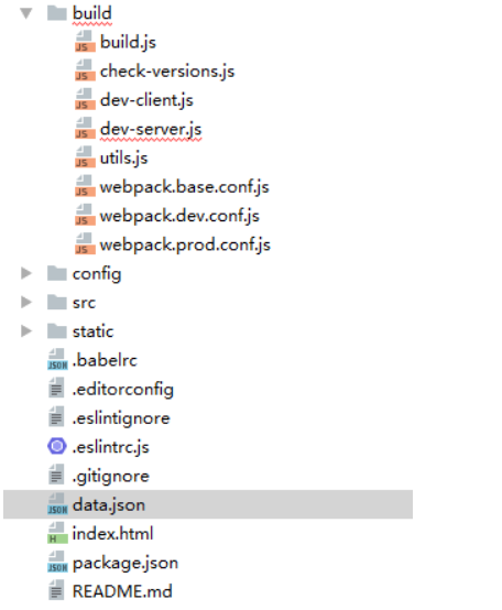 1、在项目开发的过程中,如果后台接口还未开发完成,这个时候所以我们可以自建一个假数据文件(如data.json)到项目文件夹中,这样我们就可以模仿后台的数据进行开发。但是,如何在一个vue.js 项目中引入本地的json文件呢,下面就将步骤贴出来
