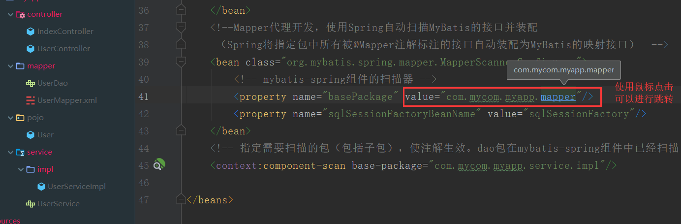<!--Mapper代理开发,使用Spring自动扫描MyBatis的接口并装配