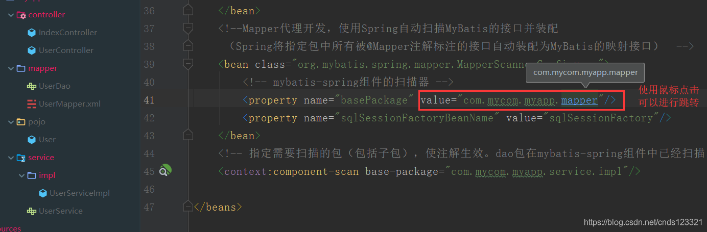 (Spring将指定包中所有被@Mapper注解标注的接口自动装配为MyBatis的映射接口) -->