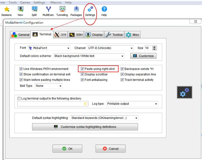如果需要鼠标右键快速复制粘贴,把 "Paste using right-click" 勾选上,然后重启 MobaXterm。