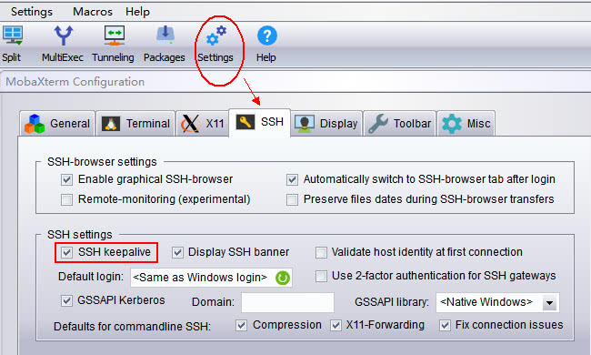 MobaXterm 使用 ssh 直接连接远程主机,或者通过跳板机登陆远程服务器可能会出现一段时候不操作就会自动关闭连接。要解决这个过一会就断开连接的问题,我们需要在勾选 Setting 下的 SSH Keepalive 选项。