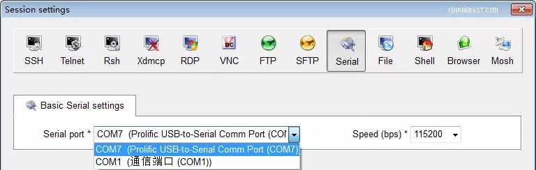 MobaXterm 不仅支持串口连接,并且直接提供下拉框选择串口号和波特率,选择串口号时还会自动显示串口设备的名称。这一点对于开源硬件玩家是相当幸福的。