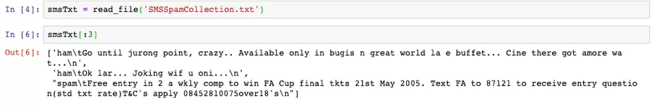 这份数据是以txt文件类型保存,每行文本的第一个单词表示文本的类别,其中ham表示正常,spam表示是垃圾邮件。