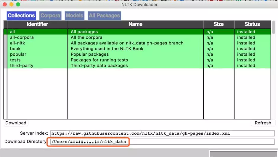 这里强烈建议使用Python3,因为Python2已经不再维护了。这步结束之后,只是装好了nltk库,nltk当中还有很多其他的资源文件需要我们下载。我们可以直接通过python进行下载:
