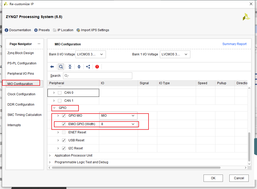 打开EMIO端口,配置成8个位端口: