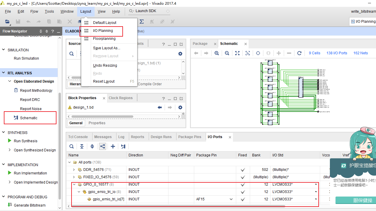 实验能够通过控制EMIO的接口对外部的设为的状态进行读写,能够方便的控制LED的亮灭