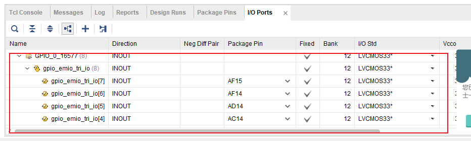 为GPIO端口,并且添加EMIO端口